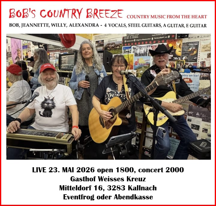 Bob, Janette, Willy, Alexandra - 4 Vocals, Steel Guitars, A Guitar, E-Guitar